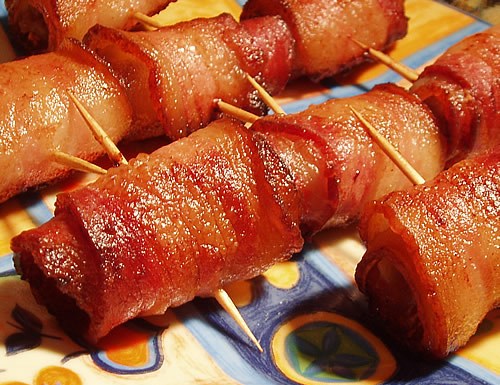 Бекон должен быть помещен в алюминиевую фольгу, наряду с кусочками плавленого сыра с полосками красного, желтого и зеленого перца, а также кусками нарезанного лука и чеснока. Бекон с этими компонентами заворачивают в алюминиевую фольгу и в течение примерно 30 минут жарят, пока он не станет мягким и слегка хрустящим и золотистым.