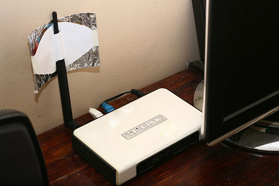 Сделайте отражатель. Обратите внимание, что фольга маршрутизатора может увеличить ваш сигнал, и сделать его более направленным.