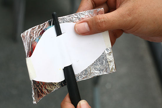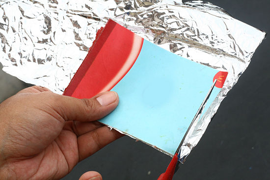 Вырежьте круг из фольги с фольгой на внутренней стороне листа бумаги или картона достаточно большой, чтобы обернуть вокруг маршрутизатора.
